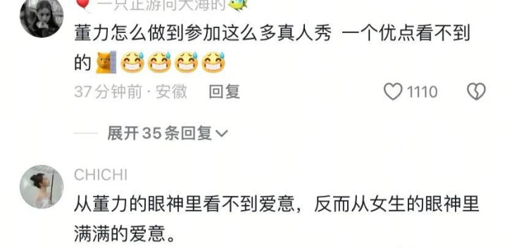 还有人吐槽说:“董力怎么做到参加这么多真人秀 一个优点看不到的。